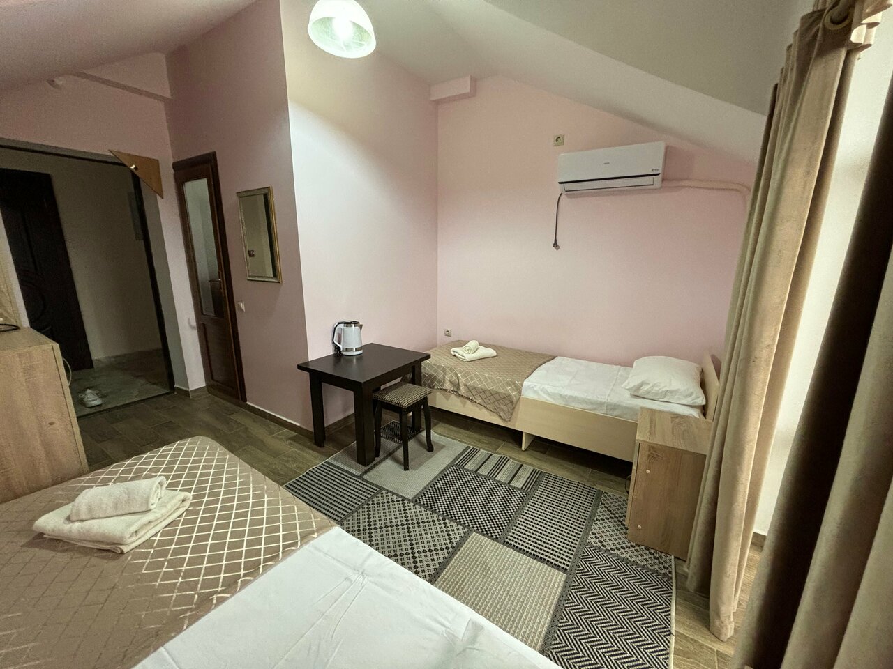 Гостиница добротная, прям близко к морю. В этом же здании есть где отовариться магазин продуктовый.. На вид очень привлекательный проект здания.