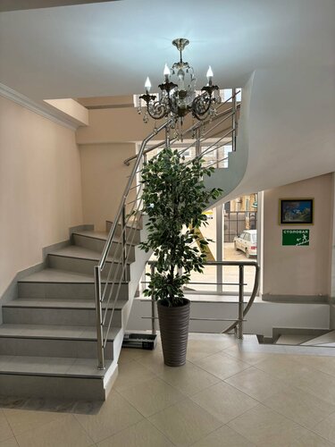 Номера маленькие, но уютные, чистые. А вот в коридорах общих грязновато. Персонал приветливый, отзывчивый. При гостинице есть столовая. Очень все вкусно! Девочки молодцы! Из столовой нам разрешали брать разносы с собой в номер. Гостиница красивая.