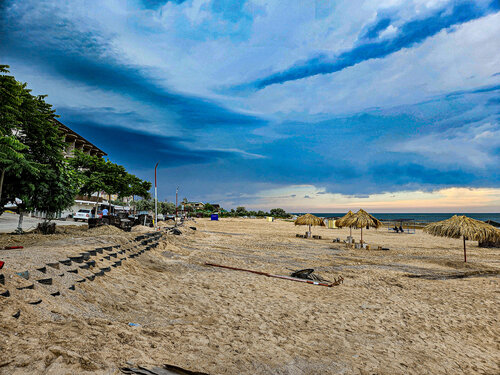 Море рядом. Однако берег подвел... К сожалению, море омелело и в нескольких метрах от берега по дну проходит каменная гряда( пласт) шириной примерно метра 4. Его не видно, он под водой. Но приносит большие неудобства. Надо перешагивать,либо переплывать, но плыть довольно неудобно над ним. Можно пораниться.